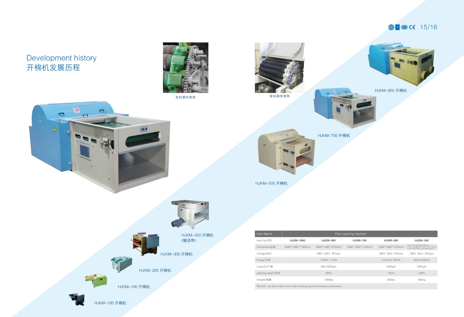 開棉機(jī),又名開松機(jī)。本公司在引進(jìn)韓國技術(shù)基礎(chǔ)上,借鑒臺灣以及同類產(chǎn)品優(yōu)點(diǎn),自主研制新一代HJKM-PP型開棉機(jī)。目前是國內(nèi)外市場優(yōu)先、體積小,外觀大方、功效強(qiáng)的產(chǎn)品,比同類產(chǎn)品每小時多開松15%-20% 。 特點(diǎn):整機(jī)采用全封閉式,外型整齊美觀大方,使用操作安全可靠,吊運(yùn)安裝方便。利用輥筒針布逆方向運(yùn)轉(zhuǎn)產(chǎn)生的拉力對PP棉和棉花進(jìn)行開松。 ? 高效開松